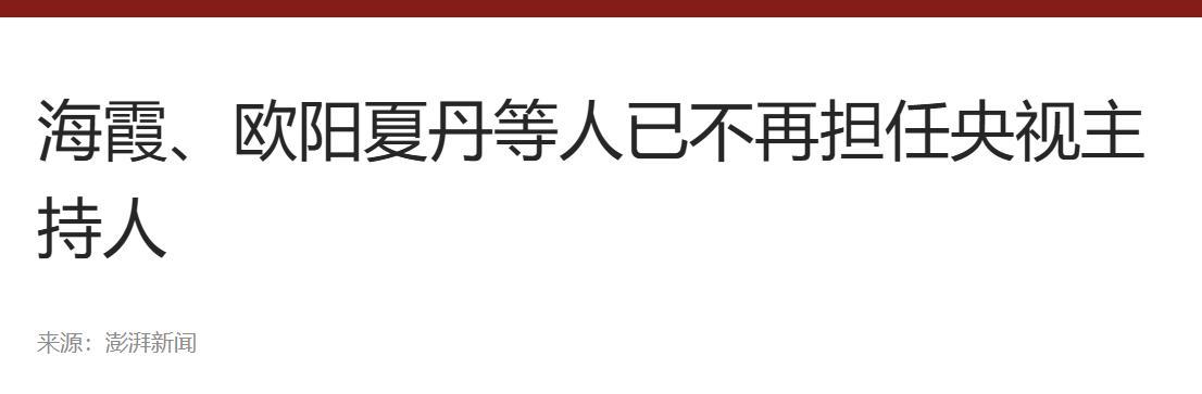 环球网《海霞、欧阳夏丹等人已不再担任央视主持人》